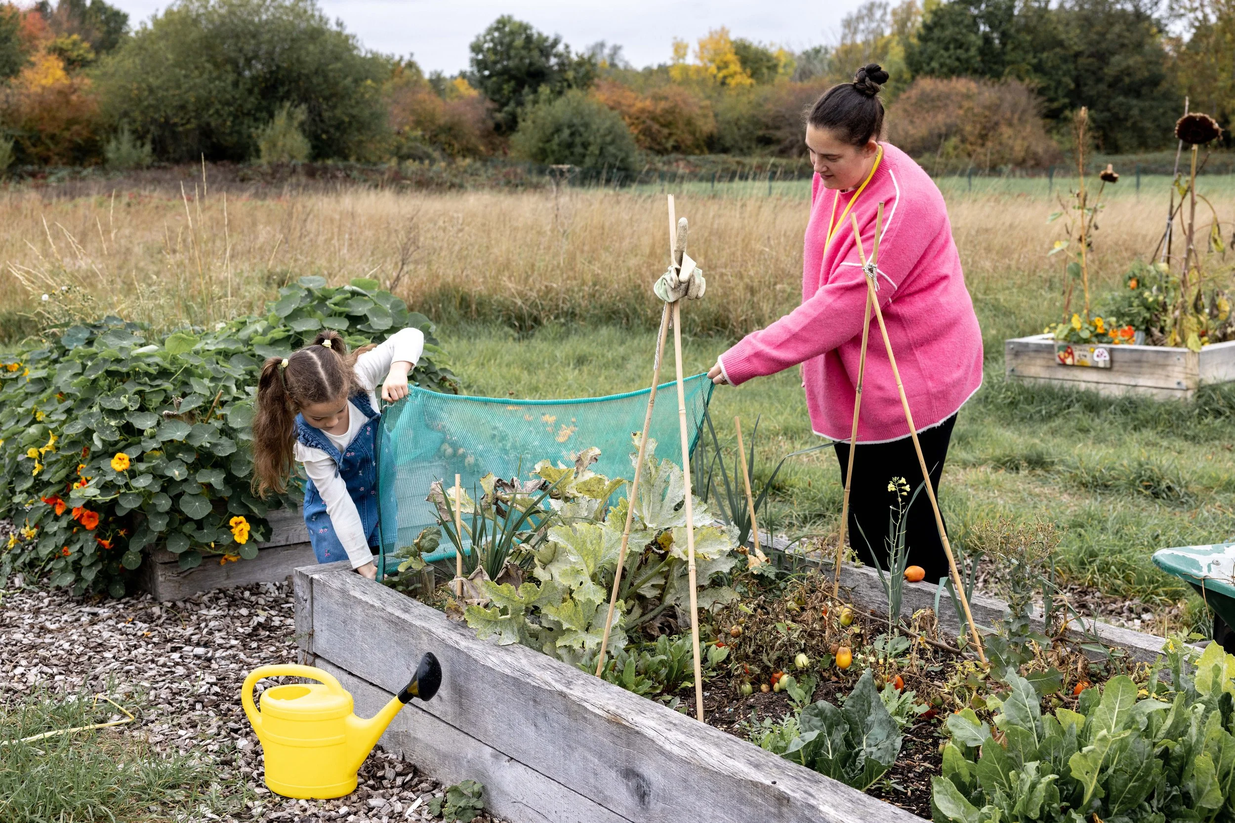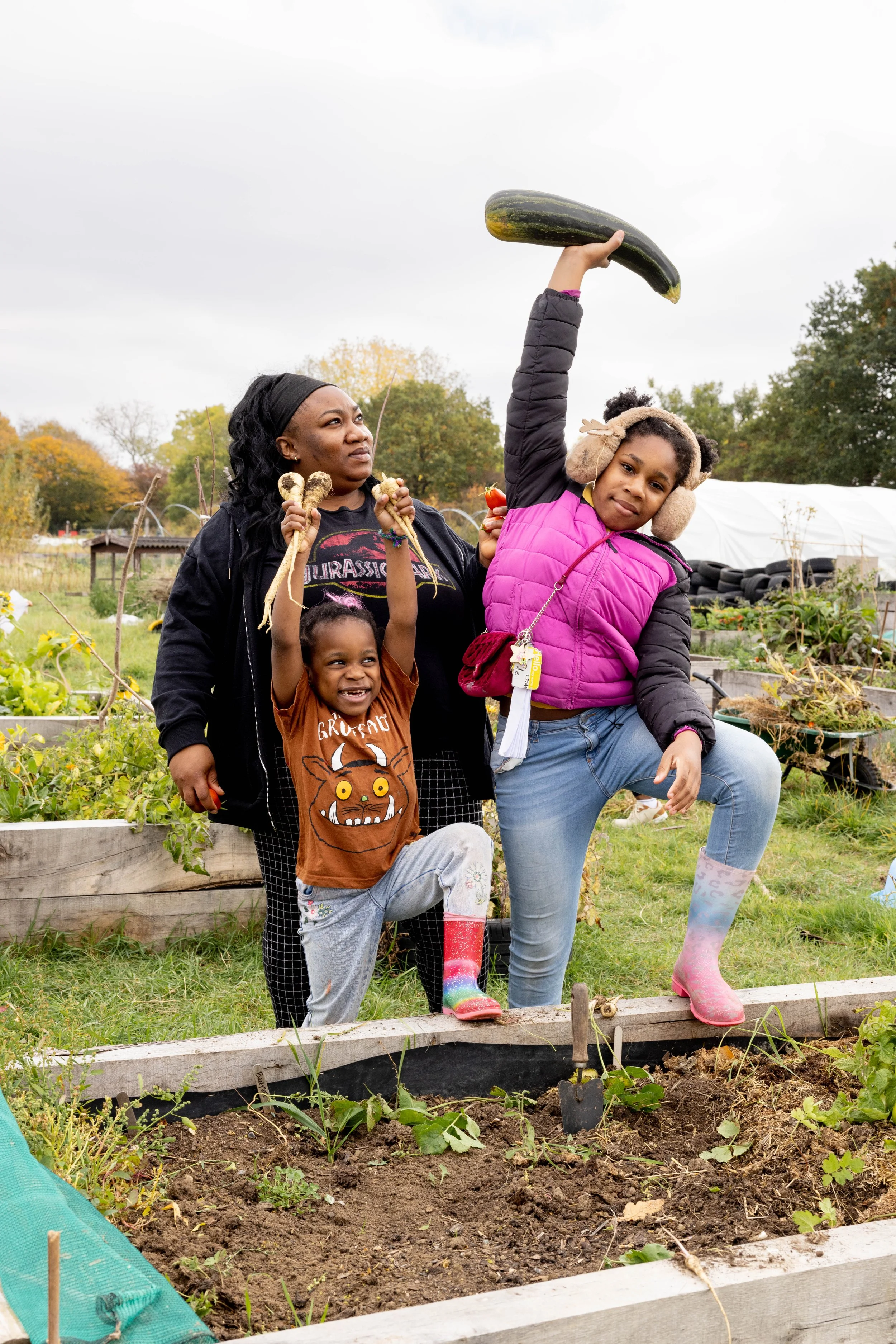 Families join us on the farm across the growing season and into winter, taking part in hands-on, welcoming community sessions designed for all ages. Each family is supported to grow food in their own raised bed; learn practical, sustainable growing skills; cook and share seasonal meals together; care for nature through wildlife-friendly growing; and build friendships and community connections.